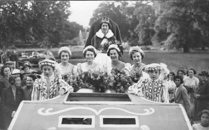 Cirencester traditionally had a town carnival every August. These petered out and were discontinued, I think in the 1970s. The photo shows the Carnival Queen and her attendants in the 1939 Carnival.