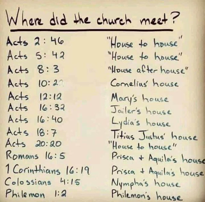 So what do I mean by ‘New (old) ways’? The original form of church meeting is described very clearly in the New Testament (see this tweet from Michael Frost – I borrowed his image for the article). It was based in people’s homes. What is preventing us making this old form of church life into our ‘new’ form in response to our current circumstances? I suggest two answers – habit and prejudice – or to roll them into one, familiarity. More about that in a moment, but first I’d like to suggest reading through some of the replies to Michael’s tweet. All sides of the debate are pretty well covered.