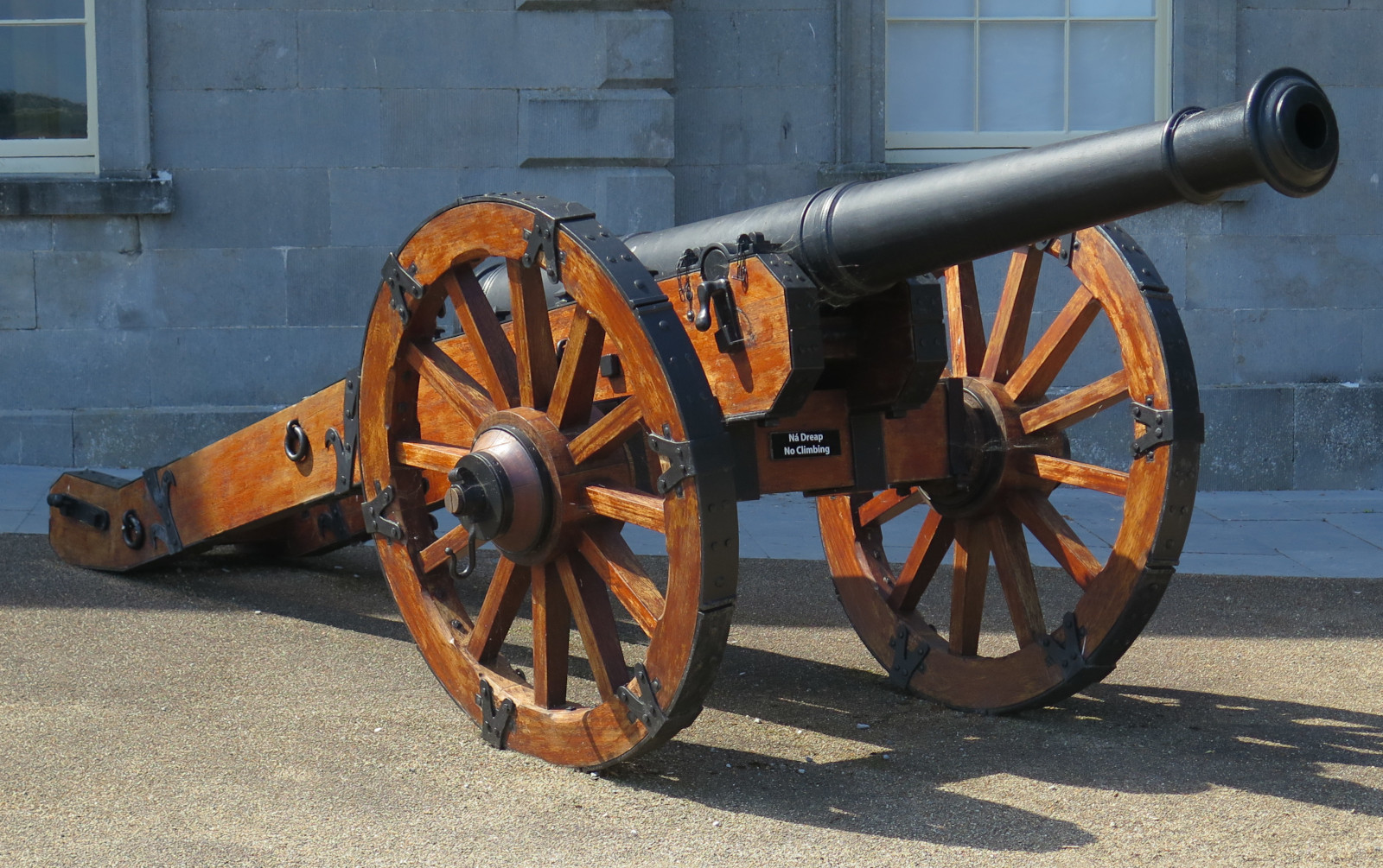 The old cannon in today’s photo dates to the time of the Battle of the Boyne (1690), near the Irish town of Drogheda on the east coast north of Dublin. The battle took place between James II, the final Stuart King of England who was attempting to win back his throne from George III, the first Hanoverian King. But it was a battle of huge significance across the whole of Europe, because both the Catholic Stuarts and the Protestant Hanoverians were backed by various European powers. There were troops from many European states on the battlefield.