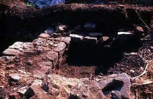 The autumn term meant the start of my time in the Lower Sixth at Cirencester Grammar School. During half-term a friend and I dug a hole in the Lower Garden just east of the footpath behind Churnside (37 Victoria Road). We found some Roman stonework, small pieces of burnt clay, pieces of a broken amphora rim, and a small piece of Samian ware with a failed repair, also a piece of tegula (roof tile). We had no idea this was a bad thing to do!