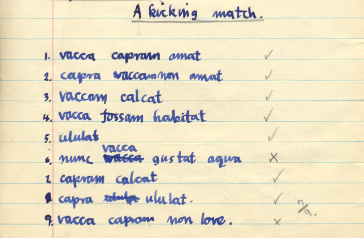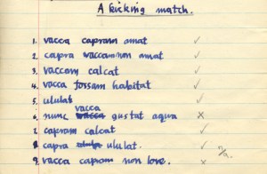 I was in my first term at Cirencester Grammar School. Amongst other subjects I had to learn some Latin, it wasn’t my favourite subject at the time. The image shows a Latin exercise in which I managed to get seven correct answers out of nine. I think my favourite subjects were maths, geography and chemistry.