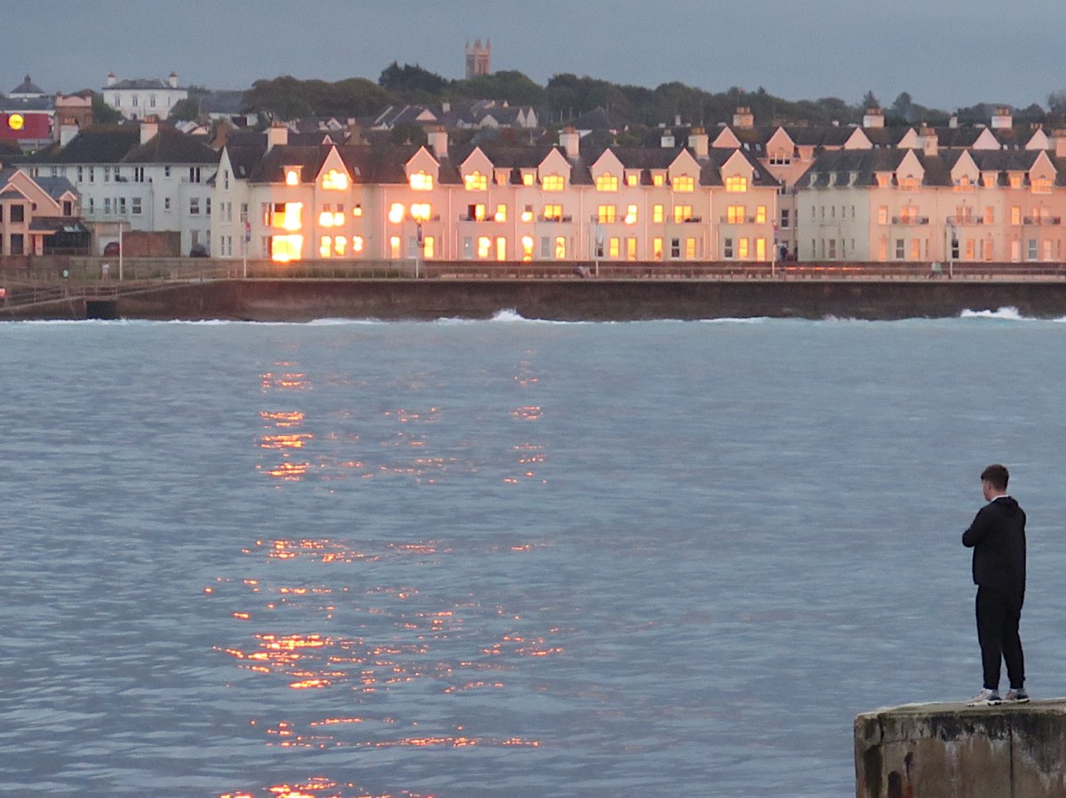 Later in the evening I walked out to the harbour and enjoyed the sounds and smells of the sea as well as a glorious sunset. Looking south from the harbour there are some great views of the town and its seafront and I managed to get this shot with the setting sun and orange clouds reflecting in the windows of properties just beyond the shore. You can even see reflections on the water of reflections from the windows! Third-hand sunlight!
