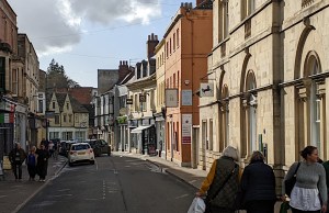 Castle Street is one of the busy streets in the town centre of Cirencester; it has a good mix of coffee shops, restaurants, clothes shops and so forth. Leading west from the Market Place, it becomes the old main road to Tetbury and Stroud, and eventually to Bristol and Bath. The fine, Palladian facade on the right is currently Lloyds Bank, but was once the private town house of a wealthy merchant.