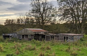 The sun is setting over these old sheds in more than one sense, not only is the sun getting lower in the sky, but the sheds themselves are no longer useful, have been roped off as they’re unsafe, and will fall down completely in the next few years or decades.