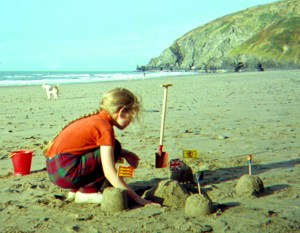 This is a photo of my younger sister, Ruth. Bear in mind that I’ll be 77 this summer, and you can deduce right away that the photo is quite old! I took it on a beach in mid-Wales, I believe in 1963 so it’s worn well. Ruth was building a lovely sand castle; Mum and Dad were on the beach nearby, as were my other two sisters, the weather was sunny and warm, and all was well with the world. It usually is when you’re on holiday!