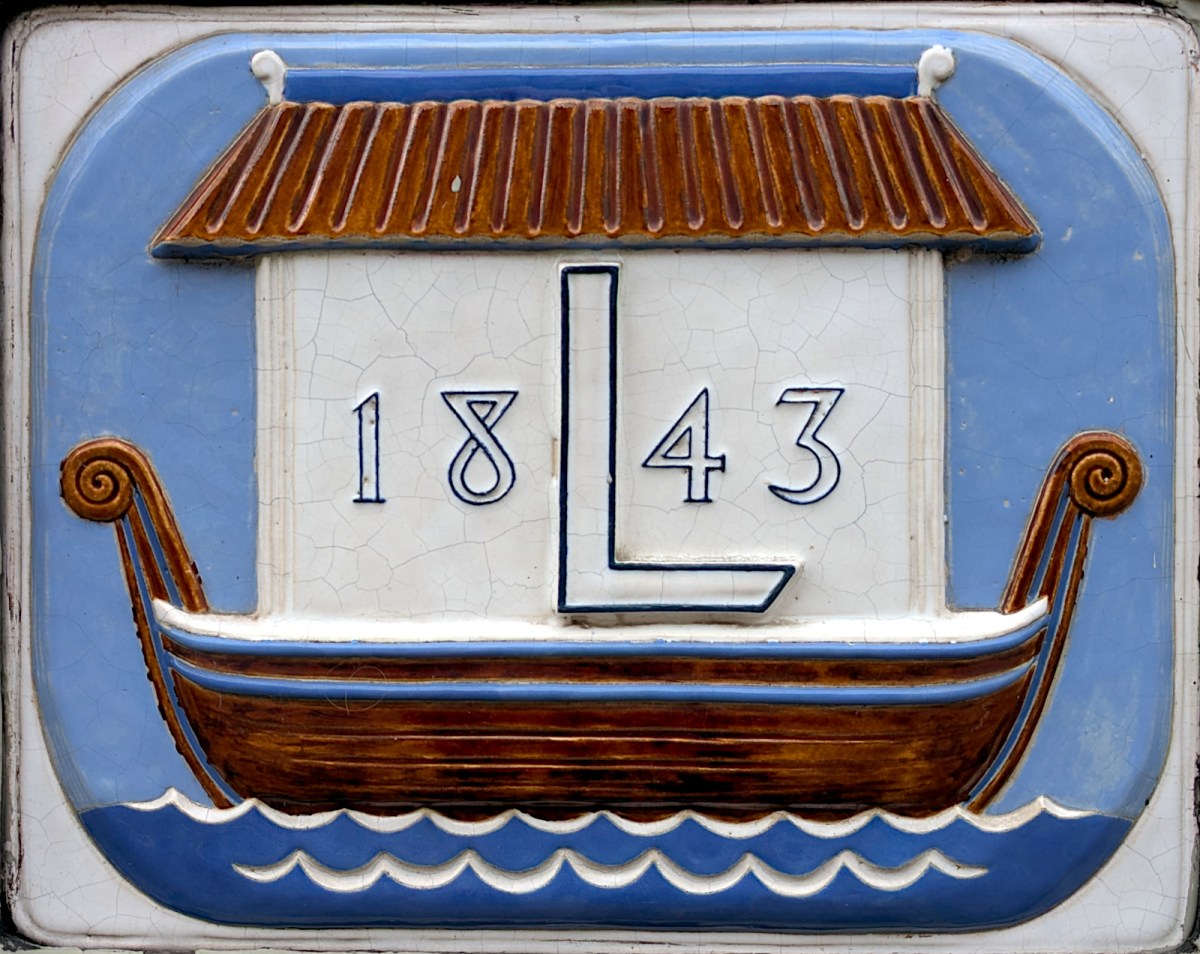 The plaque is probably of cast iron with enamel decoration and apart from some cracks seems to be in almost perfect condition. It’s likely the cracking will have been caused by differential thermal expansion and contraction with the iron changing its dimenions rather more than the ceramic glaze. The plaque has seen more than 180 day/night cycles in its time!
