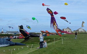 Our annual family holiday in the Lake District let us explore more of the lovely countryside from a grand old house near Keswick. The photo shows kites flying and on the ground at Maryport on the north-west coast, with the southern coast of Scotland visible across the Solway Firth.