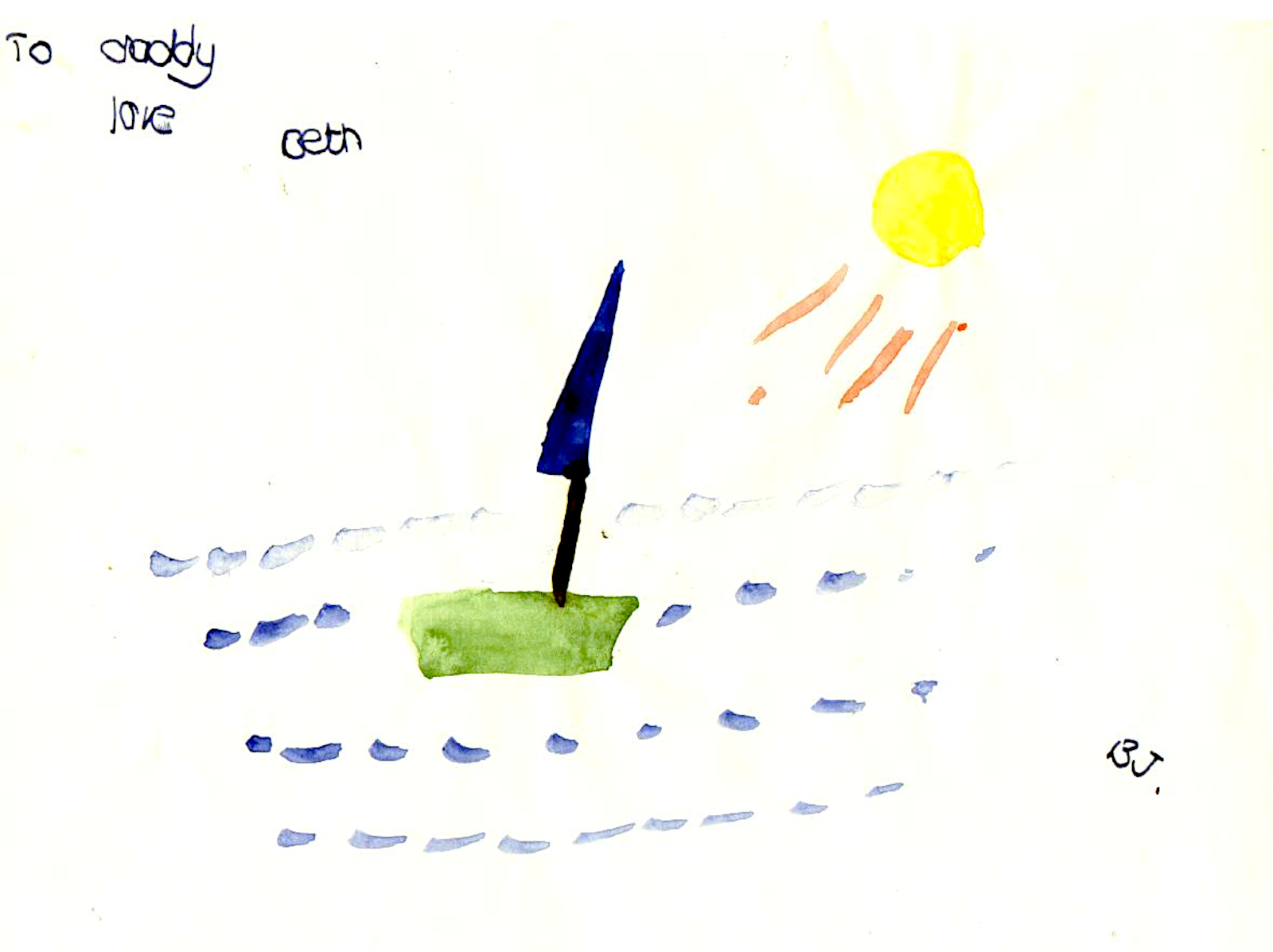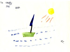 This little painting was made by my daughter, Beth. I think she has the original, I passed it on after I scanned it. It was almost certainly painted at school as it has been marked B.J. (Beth Jefferies) in the lower right corner. I can only guess the date so it probably doesn’t belong in February 1986 but could be quite a lot earlier. But it deserves to appear in a Blast from the past post somewhere.