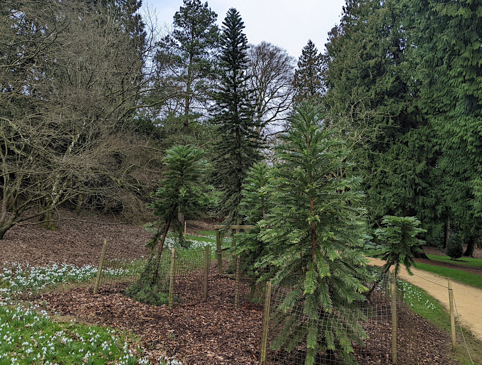 We visited Batsford Arboretum, the photo shows a drift of snowdrops and a group of Wollemi pines (Wollemia nobilis) showing signs of more maturity than we’d seen previously.