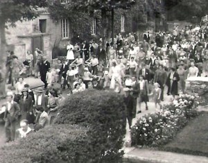 Last time we took a look at Cirencester’s Carnival and mentioned that the procession passed along Victoria Road. The photograph this time shows the procession passing Churnside (37 Victoria Road). The undated photo was taken from the garage roof of 37 Victoria Road must be late 1930s or early 1940s based on the clothes people are wearing. And the number of young men suggests it was not taken during World War 2, so either just before the war or shortly thereafter.