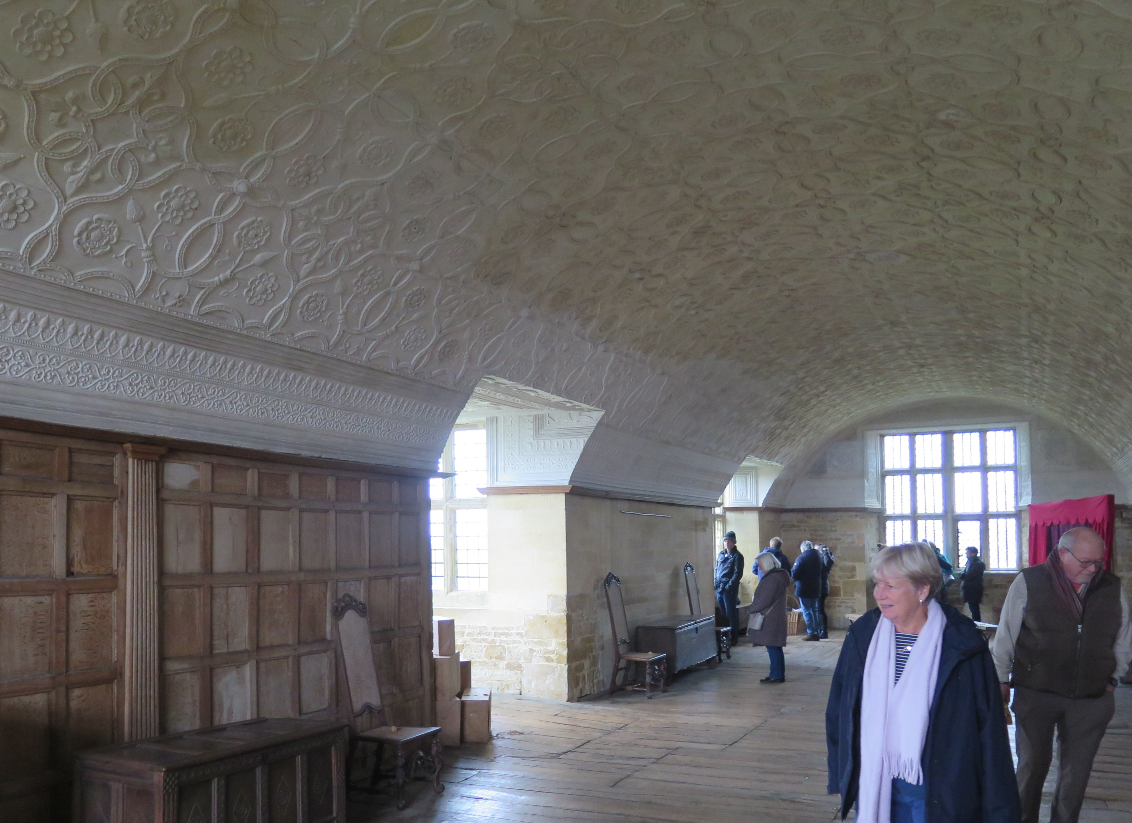 We visited Chastleton House, partly because we wanted to see the house and grounds, but particularly as we wanted to look at the amazing plaster ceilings for which the old house is so famous. We were not disappointed! The photo shows the largest of these extraordinary ceilings.