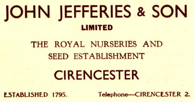 This Bradford Jefferies had several children, and one of them (Edward) is the one who ran a nursery business near Stockport. He married and their children were born in the 1920s, one of these, John Anthony Jefferies, continued to run the business . The business was still going in 2022 but I can’t find a recent website for them. They do have an entry on Facebook, however, and various listings on other business directories, though nothing seems to be being updated. I left a message on the Facebook page and had a reply from a member of staff so the company survives. It’s lasted a good deal longer its Cirencester equivalent.