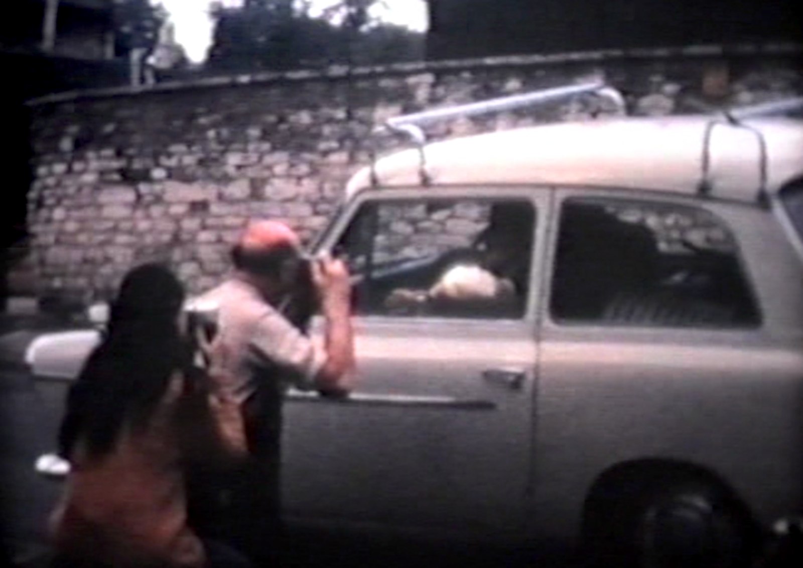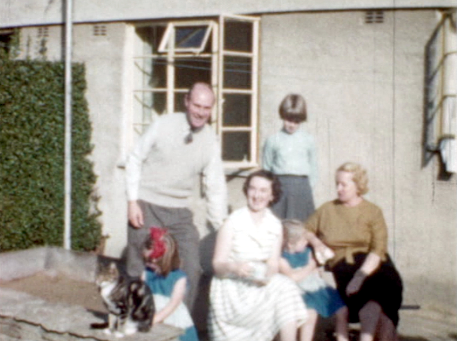Mum and Dad had a visit from Jim Fuller and his wife from Boston in the USA. Jim and Mum were distant relatives. Mum, Dad, Cindy, Ruth and Rachael went out with the Fullers to visit Bibury and some other places in the Cotswolds though I had to go to school (which I was not happy about). But Jim Fuller had an 8 mm cine camera and took some interesting sequences with it. The photo is a still from the film, Jim was behind the camera but you can see Figum the cat, Rachael, Dad, Mum, Cindy, Ruth and Mrs Fuller.