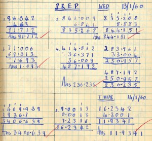 The page from my maths exercise book suggests I was pretty good at adding decimals!