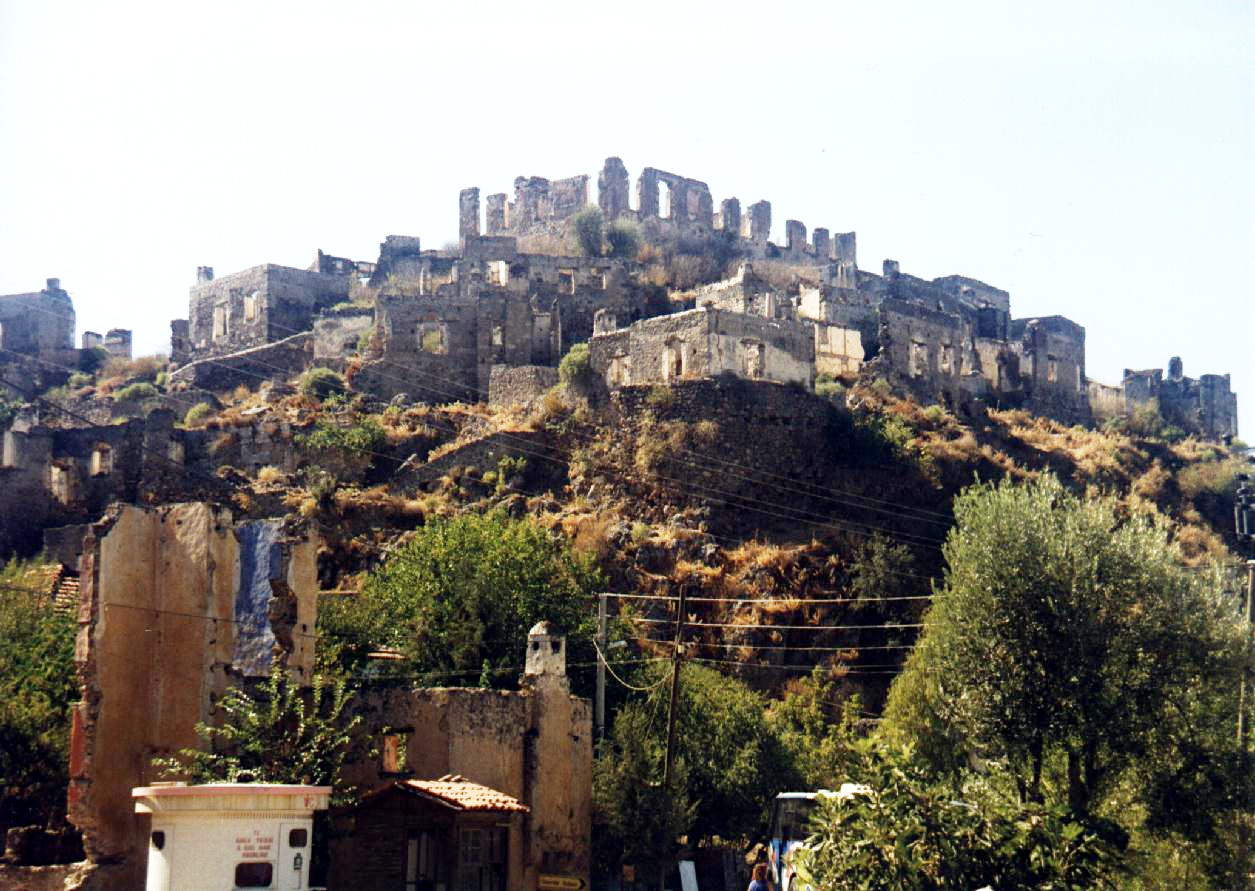 In October 1998 Donna and I had a week’s holiday on the south coast of Turkey, at Fethiye. We had a good break (apart from 24 hours with bad tummies) and we mixed days by the beach with visits to interesting places. One of these was the ruined Greek town of Kayaköy.