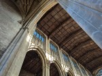 Here’s a second photo from inside Cirencester’s Parish Church. This time we’re looking up for a view of the nave’s wooden ceiling with it’s interesting construction and wooden boarding that supports the external lead sheets to provide the necessary weather-proofing. The structure is certainly a cut above the average house roof!