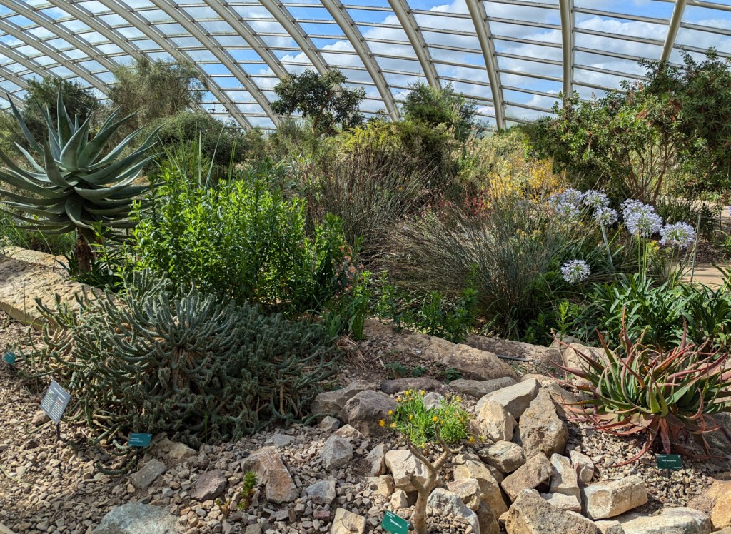 The photo shows a view inside their amazing ‘Great Glasshouse’, the world’s largest single-span glasshouse. With its protection, it’s been possible to nurture not just some tropical and semi-tropical plants, but entire biomes. The exprience reminded us of Cornwall’s Eden Project. Although the Great Glasshouse is smaller, it is still very, very impressive.